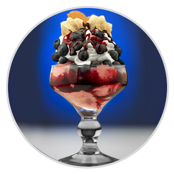 „Rosinen-Schatten” – Zutaten: WANDA-Eis, Rosinen, Schlagsahne, WANDATopping (120/215g)