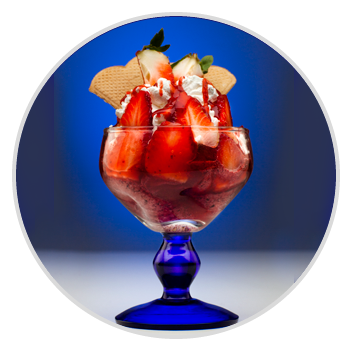 „Erdbeer-Erfrischung”- Zutaten: WANDA-Eis, Joghurt, Erdbeeren, Schlagsahne, WANDA-Topping (120/215g)
